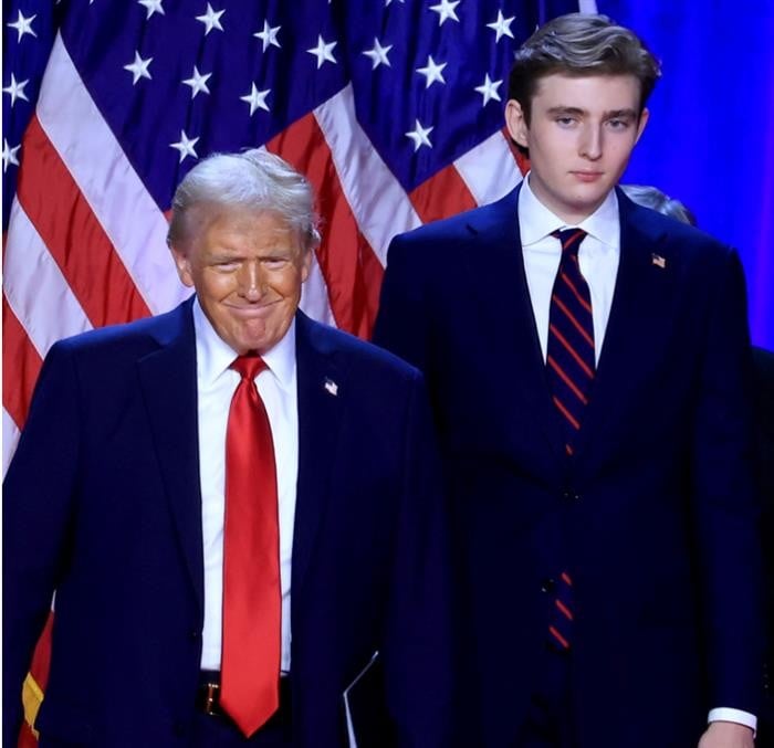 Фотографијата го прикажува Барон, за кој се проценува дека е висок помеѓу 201 см и 206 см, како се извишува над остатокот од неговото семејство, вклучувајќи ги сестрите Тифани и Иванка со нивните сопрузи и братот Доналд Џуниор со неговата девојка.