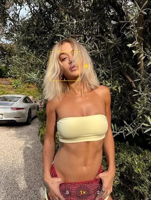 Како што може да се види, Рита сега објави фотка на која позираше топлес и вешто ги покри градите со рацете.