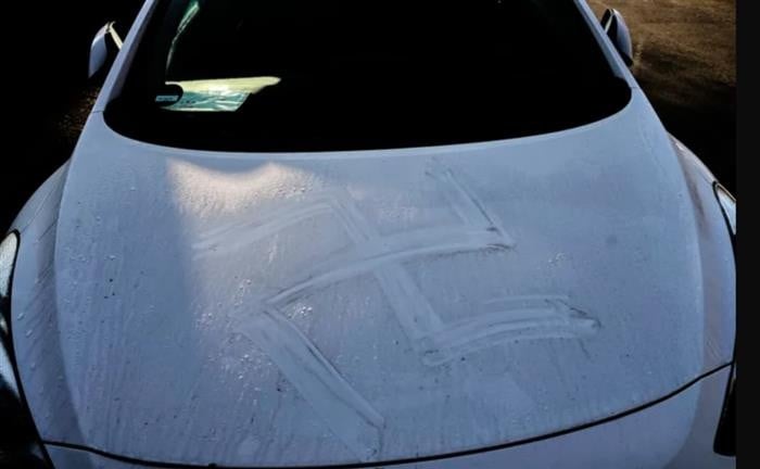 Полицијата добила пријава за кукаст крст нацртан со црвеникава течност на хаубата на паркиран автомобил, по што полициската патрола открила дека уште 50 автомобили биле оштетени на ист начин, објавува АП.