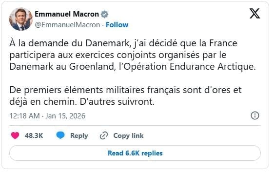„Првите француски воени елементи веќе се на пат. Ќе следат и други“, напиша францускиот претседател Емануел Макрон на X.