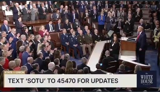 Одлуката на Врховниот суд кој неодамна ги поништи неговите царини ја нарече несреќна, но куртоазно се поздрави со четворицата врховни судии, кои му возвратија буквално без никаков израз на лицето. Аферата со сексуалниот претстапник Епстин, во која се инволвирани и негови соработници воопшто не ја спомена. Последните анкети покажуваат дека Трамп се соочува со најнизок рејтинг од почетокот на маднатот од околу 40 проценти.