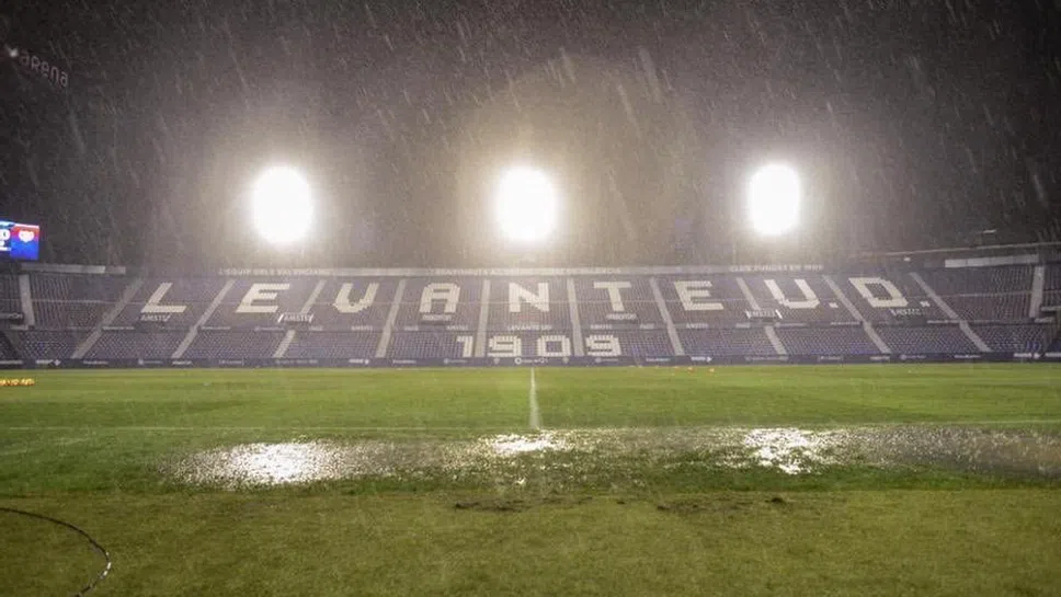 Поради обилни дождови во Валенсија како во последните 24 часа, така и во следниот период, денешниот меч од новото коло во шпанската Примера помеѓу екипите на Леванте и Виљареал кој што требаше да стартува од 18:30 е одложен.